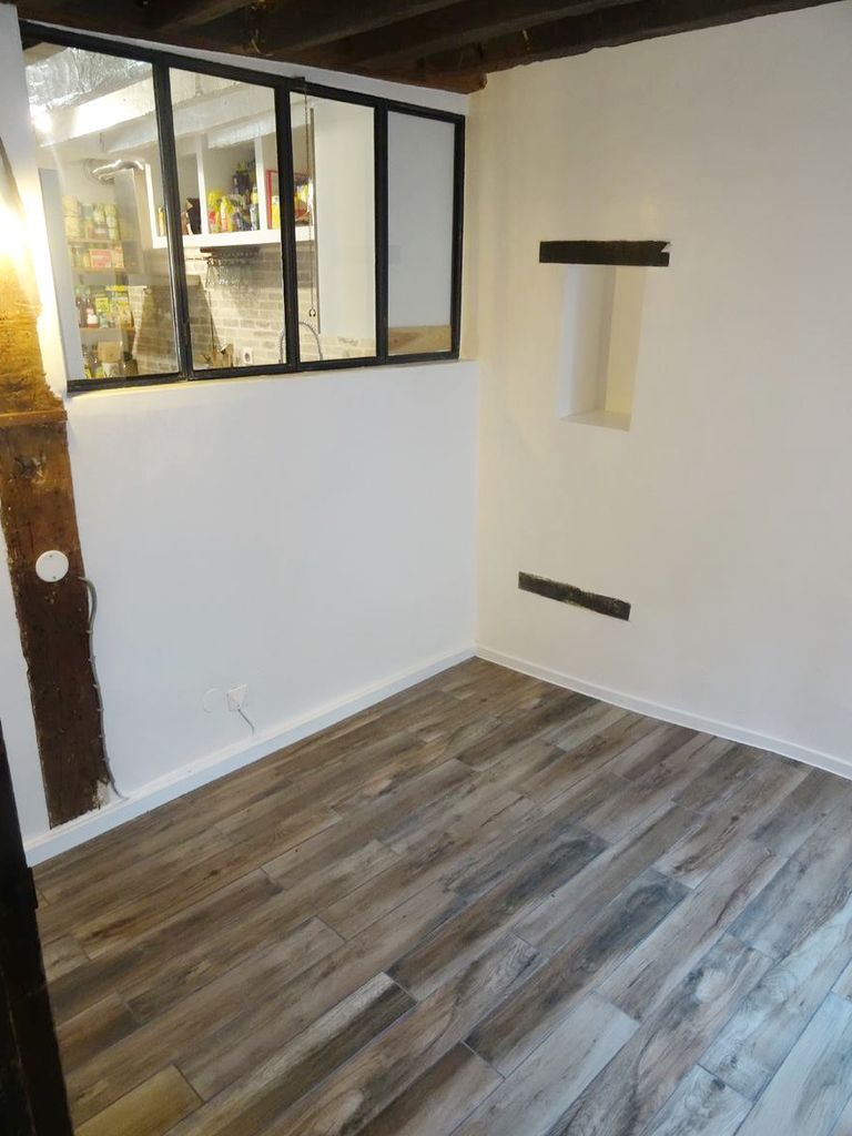 Rénovation des murs, poutres, et installation d'un carrelage en gré style parquet.