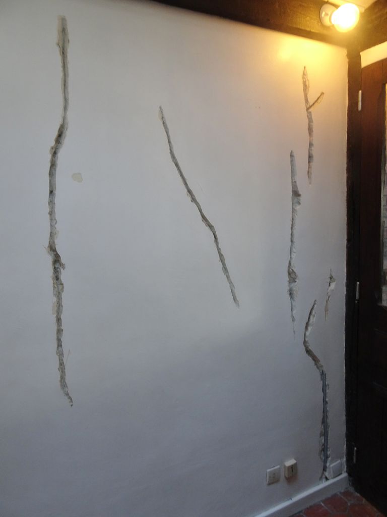 Réparation murs, plafond et peinture,puis ponçage du parquet.